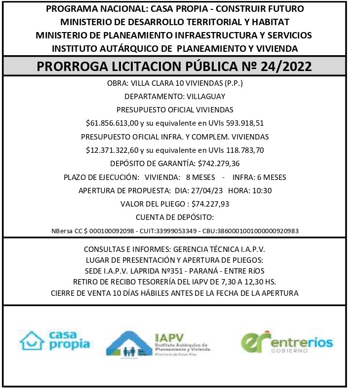 PRORROGA LICITACION PUBLICA N° 24/22 .