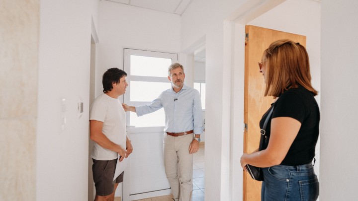 El gobernador aprovechó la ocasión para destacar que, desde el IAPV, se están otorgando créditos para construcción y mejora de viviendas, mediante sorteos "transparentes, con bolillero y sin que la política se meta a señalar quién tiene que ser el beneficiario y quién no", a tasas bajas, con periodos de gracia y con cuotas que alcanzan el por ciento de los ingresos familiares.