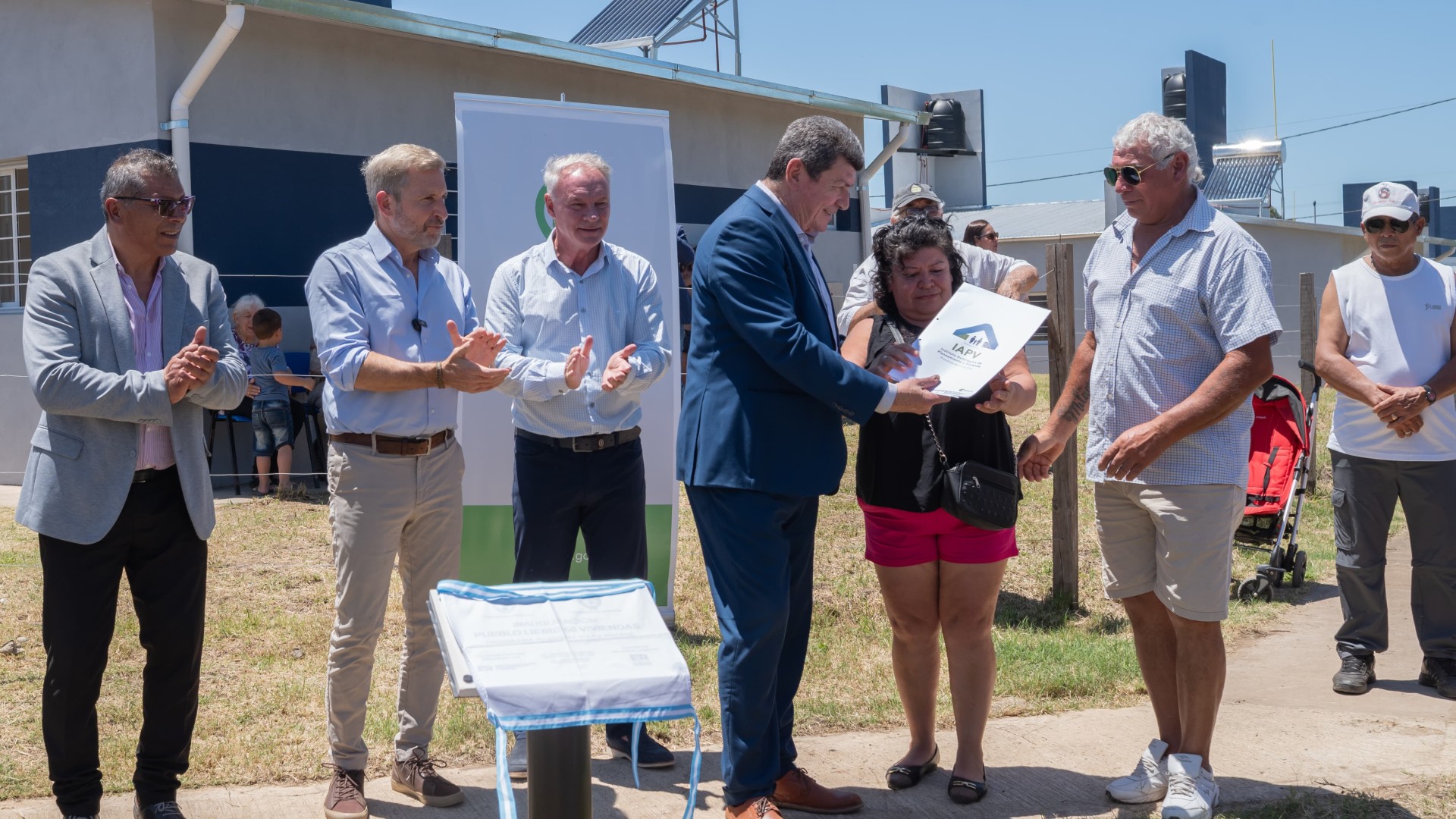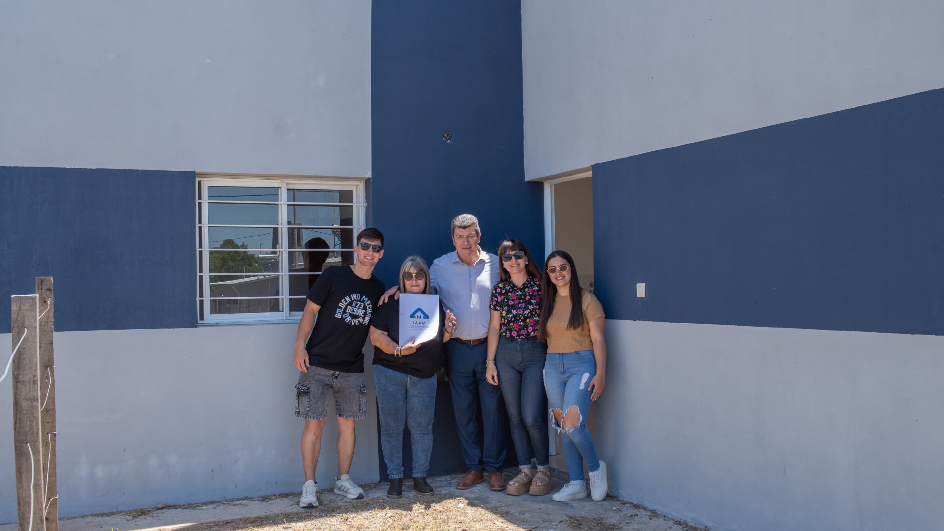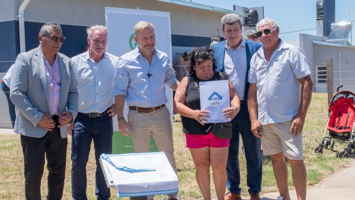 Acompañado por el intendente Julio Pintos, el mandatario entregó las llaves de las nuevas unidades habitacionales a sus beneficiarios. Las viviendas fueron construidas por el IAPV en el marco del Programa Casa Propia, con financiamiento conjunto entre provincia y Nación.
