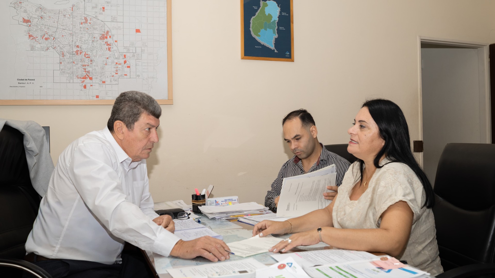Al respecto, la intendenta Miriam Díaz expresó: "Vinimos a conversar con el presidente del IAPV para conocer cómo viene avanzando y encaminándose el proyecto de viviendas para San Jaime de la Frontera, que contempla la construcción de 15 viviendas. Agradecemos al presidente del IAPV y, por supuesto, al gobernador de la provincia por el acompañamiento y el apoyo para que este proyecto pueda concretarse."